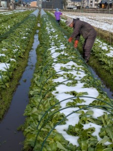 これから冬を越え、雪の中で水菜は育っていきます。