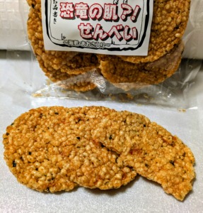 名前にびっくり、食べて納得。恐竜の肌せんべい🦖