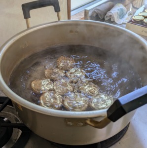 「このくらいかな」「もう少しいけそうやね」などとメンバー同士で声をかけ合いながら、鍋をのぞき込み、火加減を調整していきます。