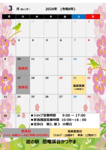 3月の営業日・営業時間のおしらせ