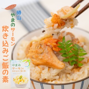 1,190円 (税込み) 福井県勝山市の清らかな水で育まれた「勝山 やまのサーモン」。その上品な味わいを、ご家庭で手軽にお楽しみいただける「炊き込みご飯の素」